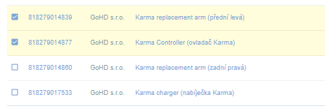 Některé políčka v seznamu lze měnit hromadně, zde je ukázka hromadné změny dopravce. Stačí vybrat dopravce kterého chcete, označit záznam aby byl žlutý a poté kliknout na „save“ vedle počtu stránek (vpravo dole)“