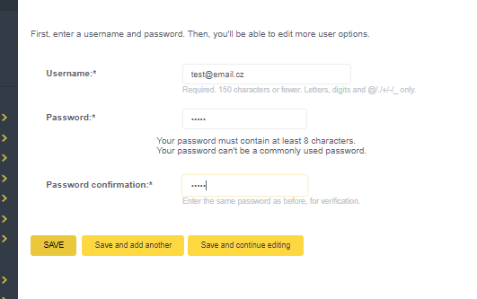 Přidání uživatele